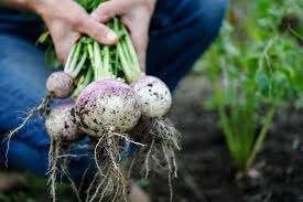 (Brassica rapa) Heirloom dating back prior to 1870. Also known as ‘Veitch’s Red Globe’. Large, globe-shaped, white roots with purple top, and sweet, mild flavour. Stores well